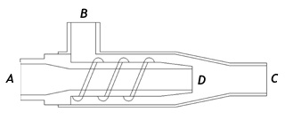 lateral (B) que recebe o outro fluido (de sucção
